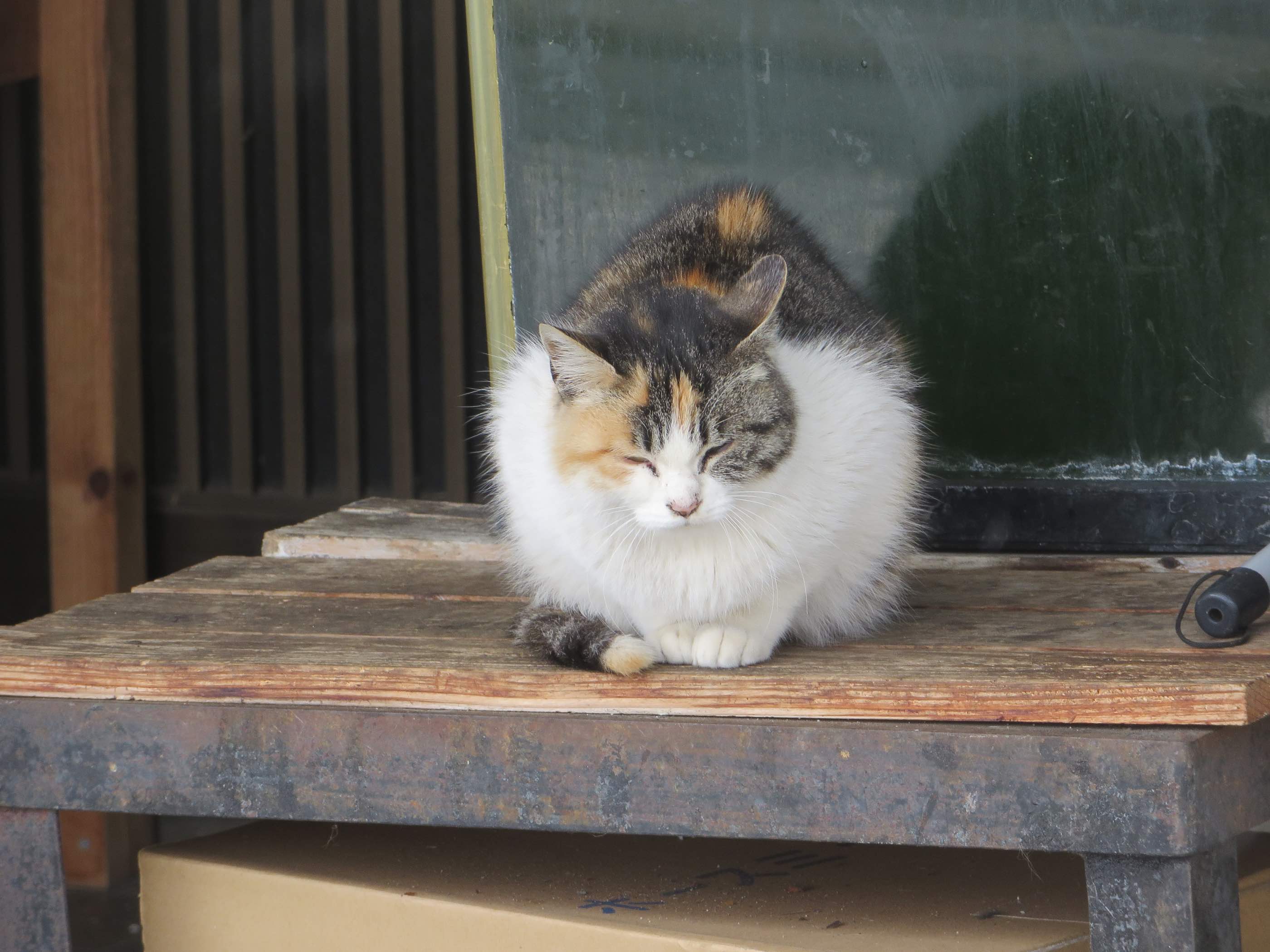 三毛猫さん 寒そうですね。
