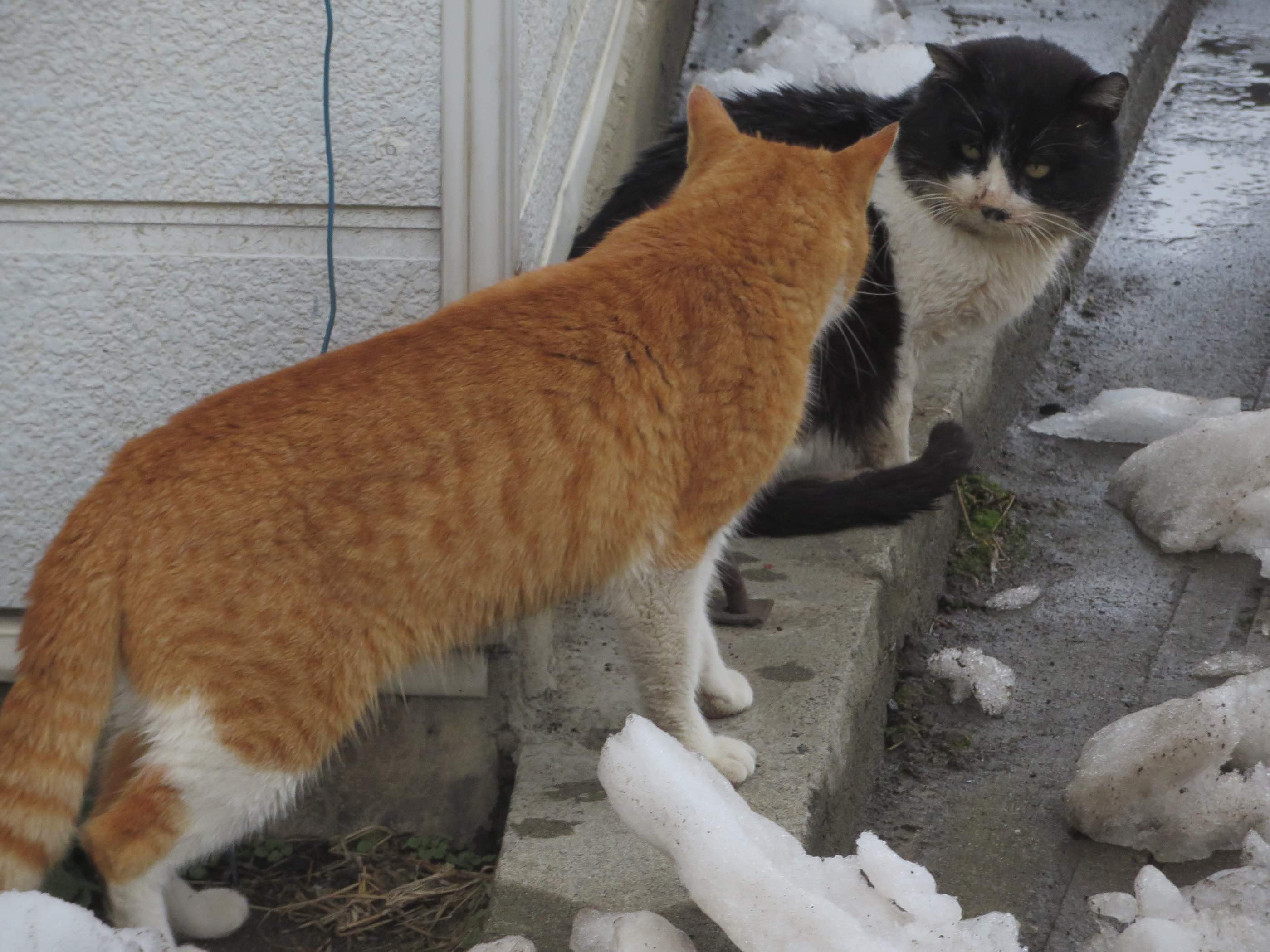はっちゃんが居るのも知らずに角を曲がろうとした茶白君。
