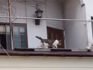 洗濯物を干すと猫さんに落とされちゃうかも。