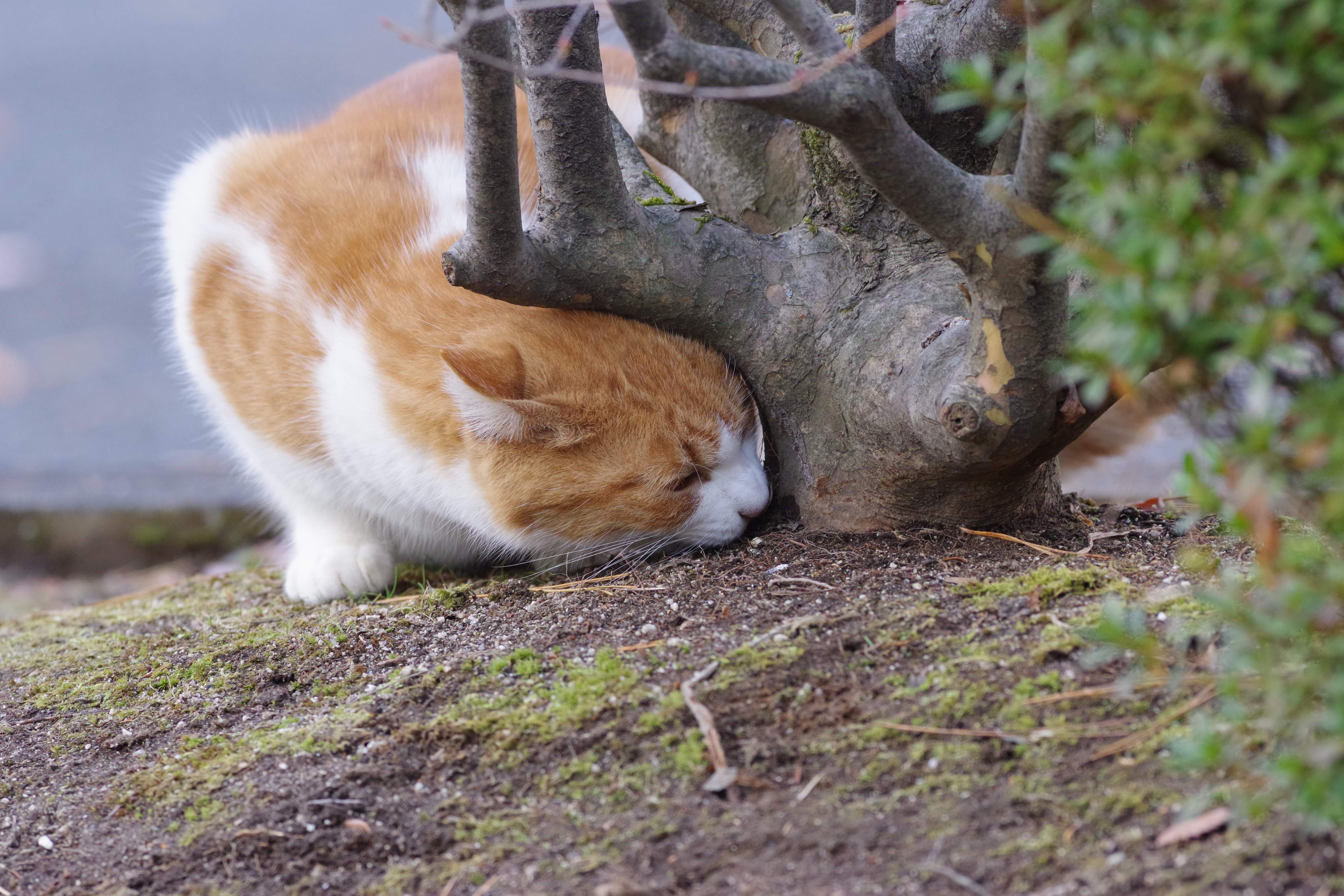 情報収集よりぴったりフィットが楽しかった…のか? でもでも、やっぱり掘ってみれば良かったですかねー? 他猫のスプレー痕跡とか嗅いでるのかと思ったのですう。