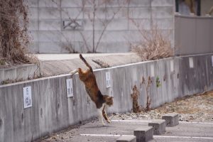 H隊長さん ああ、そこじゃなくて例の神社の近く、プレデターが立っている小東京の向かいの駐車場です。 優しいおばさん宅の前でいつもまったりしてるコなので、こんなに活動的に行動しているのを見たのは初めてです。