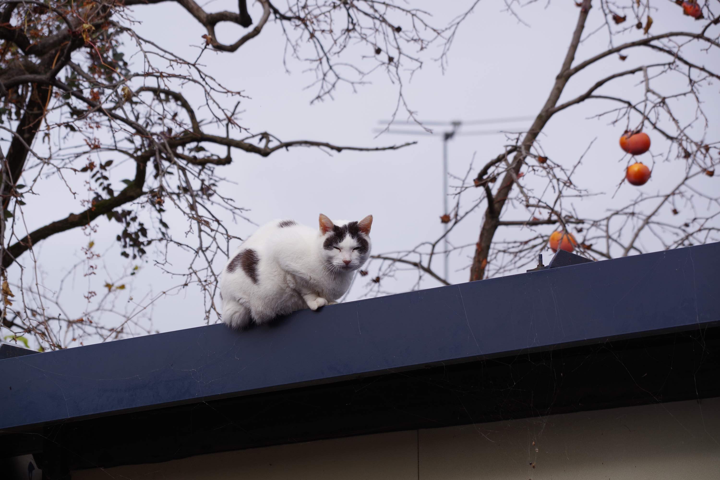 あ~っ‼️ 柿の実み~つけた‼️ キョロo(・ω・= ・ω・)oキョロ あれ…(汗) ね…猫さん なんでそこにいるの? にゃん『ここまで来たけど…手がとどきませんでしたにゃ…』 さては… 私と同じこと考えてたの