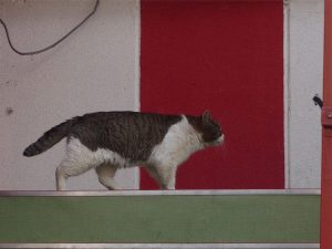 面妖な建物ですよねえ。 この配色を決めた人って一体… 猫さんは赤が識別出来ないと言うから気にならないのかな?