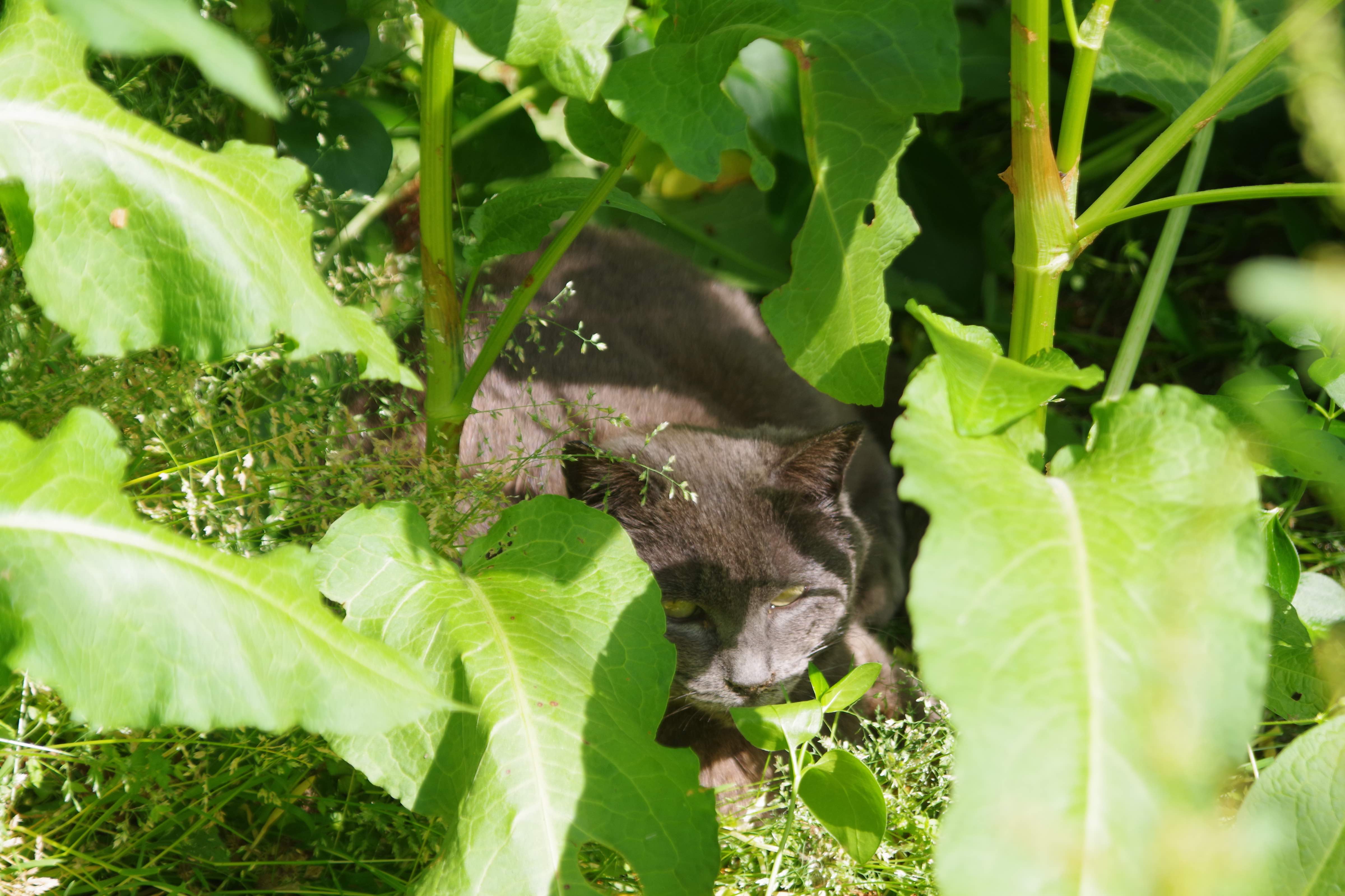 この時期、草花の繁茂の勢いが凄まじいですね。 絶好のお昼寝場を提供してくれる訳なのですが、もうちょっと顔が見えたらなー。